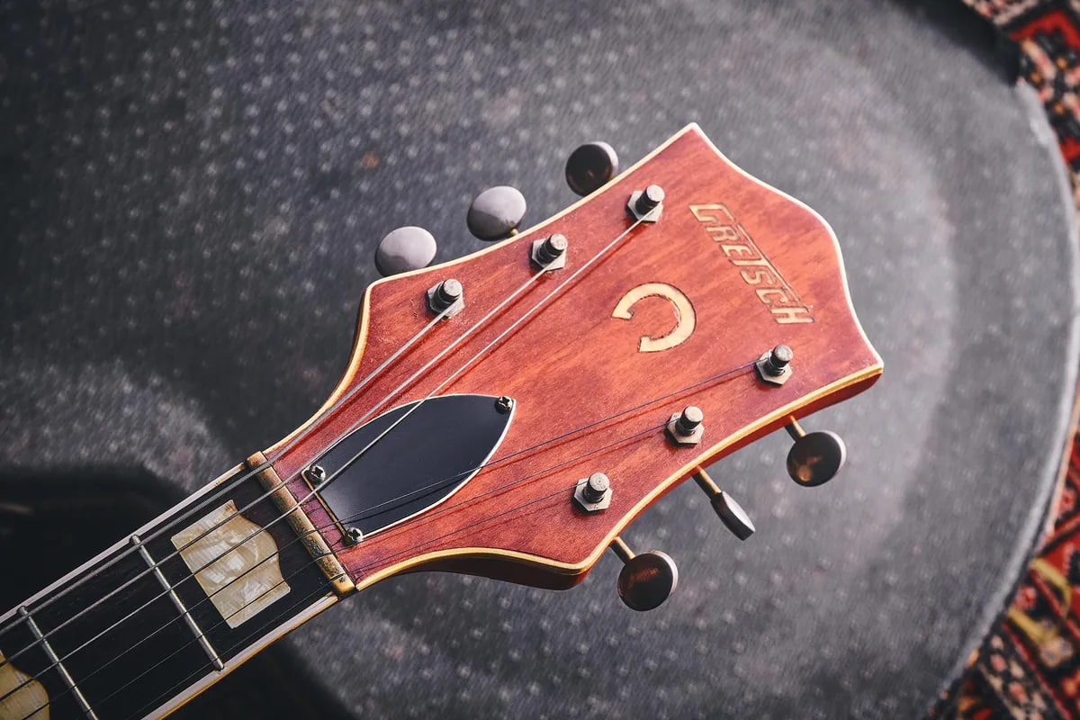 By 1957, Gtetsch was phasing out the Western look, largely at the urging of its top endorser, Chet Atkins. Gone were the steer-head inlays and cowboy motifs. The hump block markers and a more refined horseshoe headstock inlay replaced them, while the branded “G” on the body was discontinued.